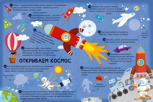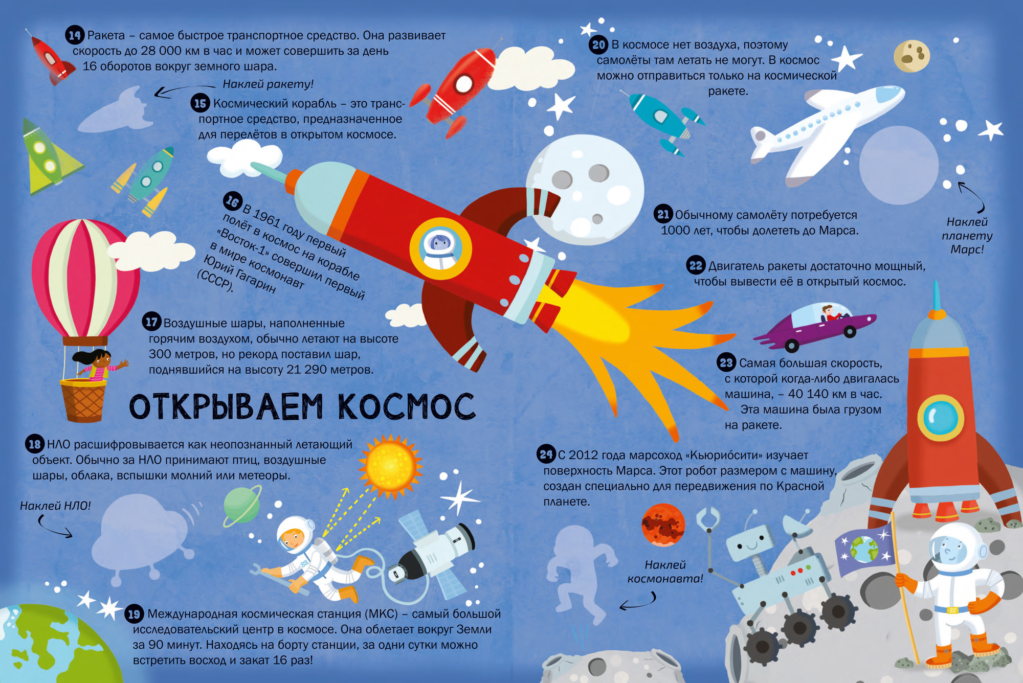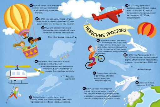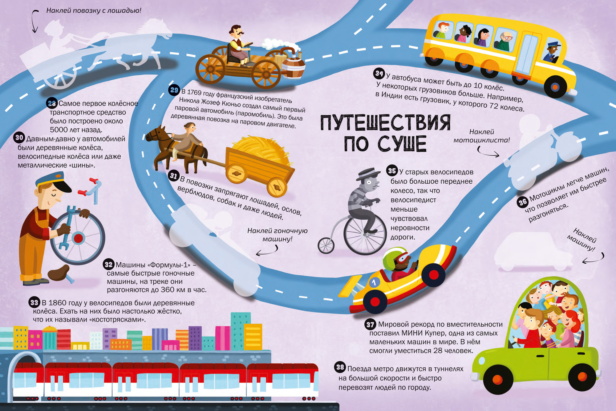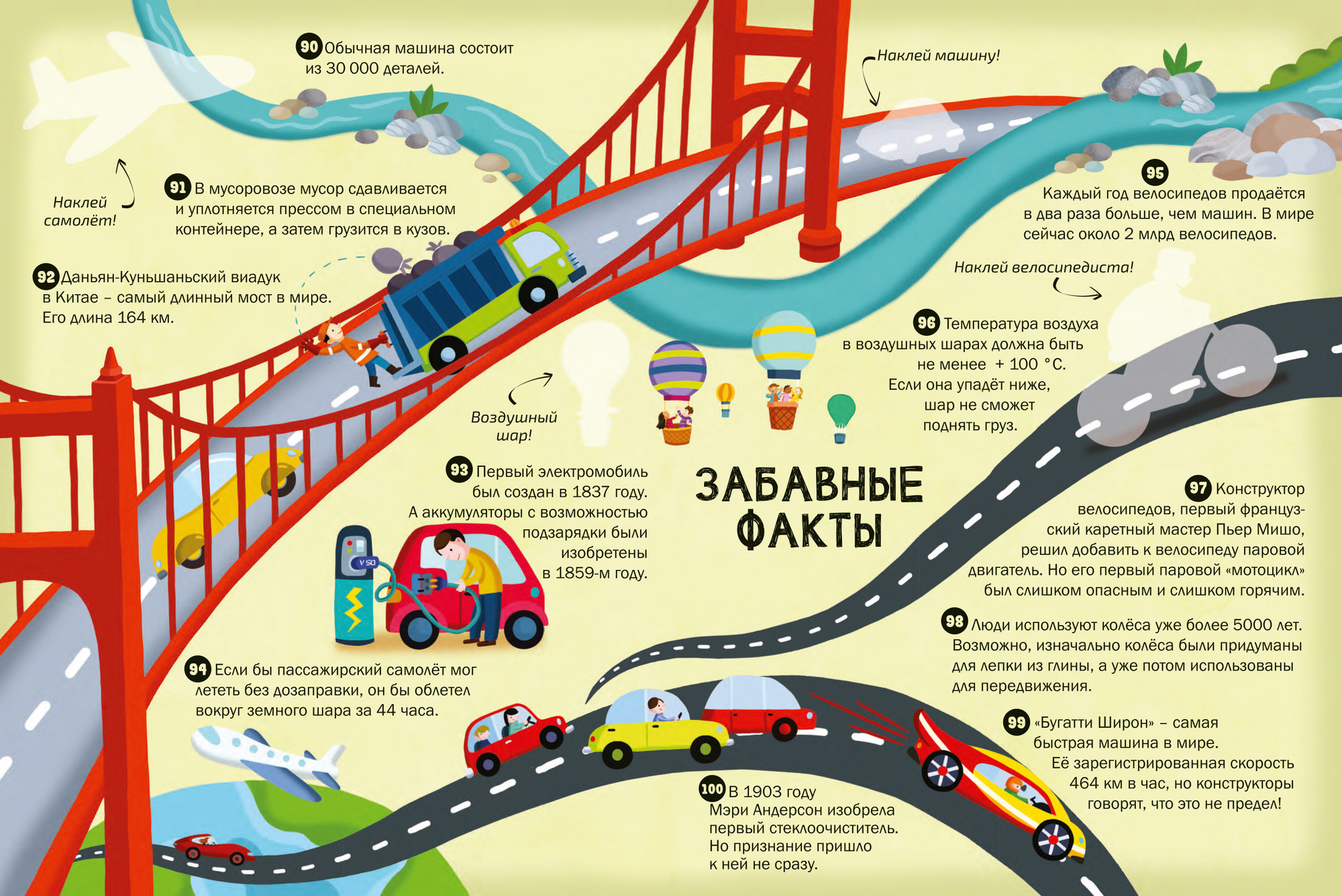 Открой для себя много удивительных фактов о транспорте в этой книге с наклейками. Найди наклейки к этим интересным сведениям, исследуй мир транспортных средств и отправляйся в путешествие по страницам книги.