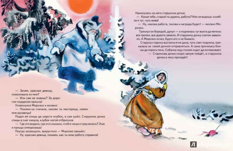 Проиллюстрированная Ниной Носкович русская народная сказка «Морозко» образно и легко повествует об очень важных для маленького читателя вещах: о том, что доброта обязательно победит злобу и коварство, что смирение и трудолюбие вознаградятся, а гордыня и жадность будут наказаны.