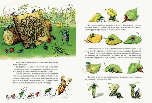 Добро пожаловать на стадион “Жукамо”! Сегодня вы станете свидетелями необычных соревнований – жуки всех видов будут состязаться в быстроте бега, высотных прыжках, в скрипе и даже в решении труднейшей задачи по высшей математике. Увидеть всё это незабываемое действо вы сможете благодаря репортажу Виталия Бианки и красочным иллюстрациям Елены Нецкой.
