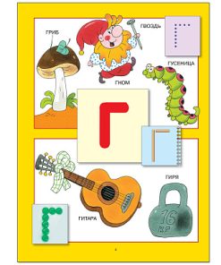 В книге ребенку встретятся красочные картинки с изображением самых разных предметов и животных, начинающихся на тут или иную букву. Каждой букве посвящена одна страничка, в центре — сама буква, а вокруг — рисунки тех предметов и животных, которые с нее начинаются.