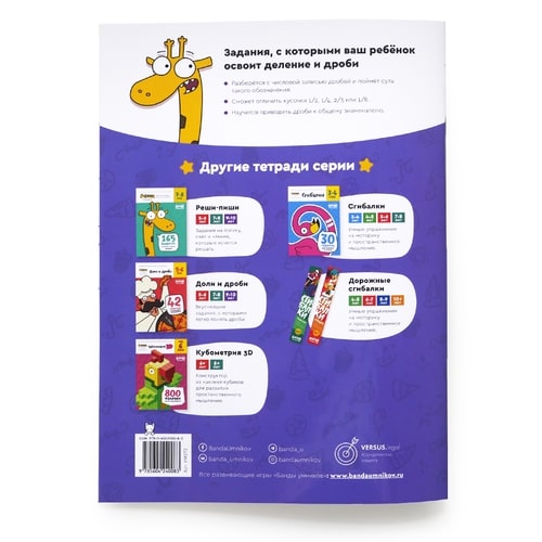 С этой тетрадью дети научатся приводить дроби к общему знаменателю, складывать и вычитать их между собой.