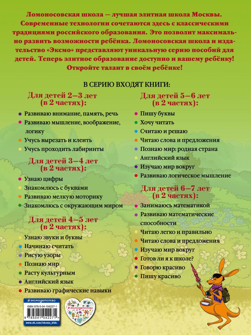 Издательство «Эксмо» и Ломоносовская школа представляют уникальную серию пособий для детей. Ломоносовская школа — лучшая элитная школа Москвы. Современные технологии сочетаются здесь с классическими традициями российского образования. Это позволяет максимально развить возможности ребенка.